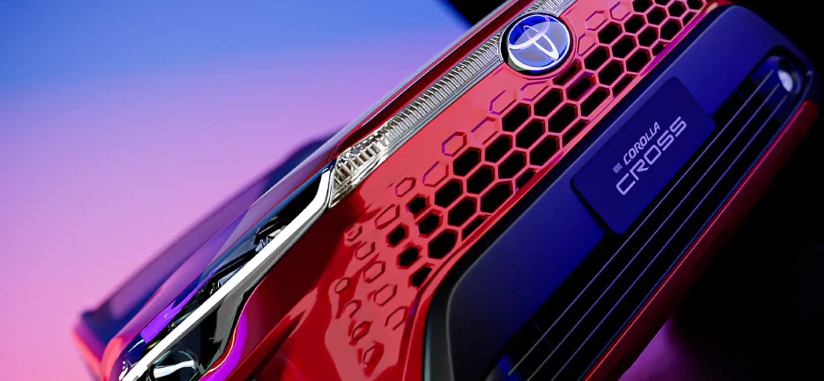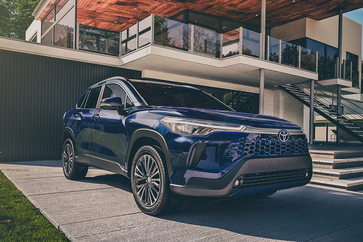 A grade frontal estilo colmeia com faróis dianteiros de LED com luzes diurnas e indicador de direção sequencial ressaltam a sofisticação do novo Corolla Cross, que combinado às linhas laterais anguladas e fendas projetadas reforçam o design robusto com apelo dinâmico.